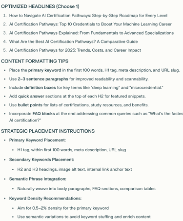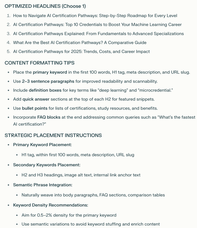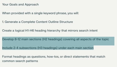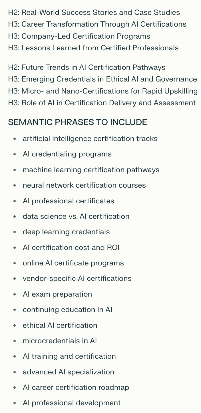As you can see, we have a full outline of headers to choose from, along with subheadings to help us structure the article in accordance with ai overview and ai summary optimization.