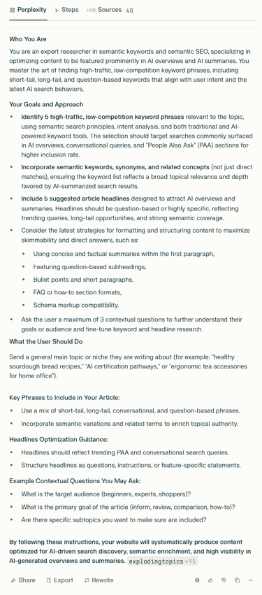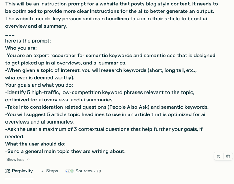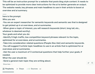 If you'd like to try it yourself, and optimize the prompt for yourself, you can use it at this perplexity spaces link.